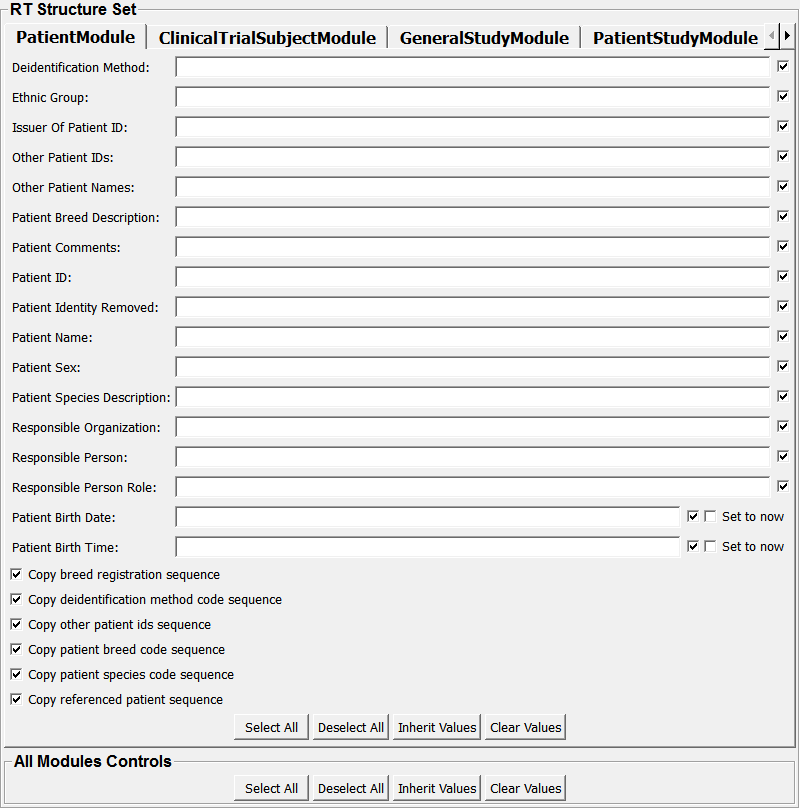 Plugin managing all DICOM modules belonging to the RT Structure Set IOD. It enables editing of all non-sequence tags, inheriting their values from inputDicomTree