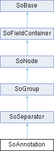 This group node delays rendering its children until all other nodes have been traversed, turning off depth buffer comparisons first. The result is that the shapes under the annotation node are rendered on top of the rest of the scene. This node is derived from SoSeparator, so it saves and restores traversal state for all actions.