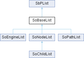 This subclass of SbPList holds lists of pointers to instances of classes derived from SoBase (an abstract class). A flag indicates whether adding an instance pointer to the list should add a reference to the instance. If this flag is TRUE, then adding and removing pointers from the list updates reference counts in the corresponding instances.