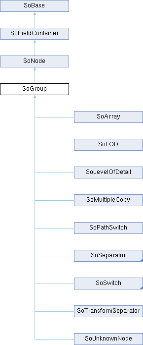 - SoArray, SoLevelOfDetail, SoMultipleCopy, SoPathSwitch, SoSeparator, SoSwitch