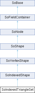 Each triangle consists of 3 vertices, each of which is denoted by an integer index (from the coordIndex field) into the current coordinates. This is a specialized version of SoIndexedFaceSet, which offers slightly faster updates/rendering, since it only renders triangles. Unlike SoIndexedFaceSet, no -1 separators in the coordIndex field are needed nor supported. Depending on the current material and normal binding values, the materials and normals for the faces or vertices may be accessed in order or indexed. If they are indexed, the materialIndex and normalIndex fields are used.