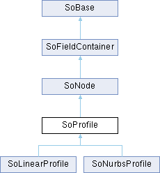 This node is the abstract base class for all profile nodes, which define 2D curves. A profile is not itself geometry, but is used to change or delimit the geometry of something else. For an SoText3 node, the profile determines the cross-section of the side of each text character. For an SoNurbsSurface node, the profile is used to specify trim curves for the surface.