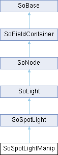 SoSpotLightManip is the base class for all SoSpotLight nodes that have a built-in 3D user interface (this is the only such class provided with the Inventor toolkit). Since it is derived from SoSpotLight, any changes to its fields result in a change of lighting for nodes that follow it in the scene graph. In this case, the interface edits the location , direction , and cutOffAngle fields. Also, the color of the manipulator's geometry will reflect the color of the light (but you can not edit the color using this manipulator).