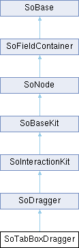 - SoInteractionKit, SoDragger, SoCenterballDragger, SoDirectionalLightDragger, SoDragPointDragger, SoHandleBoxDragger, SoJackDragger, SoPointLightDragger, SoRotateCylindricalDragger, SoRotateDiscDragger, SoRotateSphericalDragger, SoScale1Dragger, SoScale2Dragger, SoScale2UniformDragger, SoScaleUniformDragger, SoSpotLightDragger, SoTabPlaneDragger, SoTrackballDragger, SoTransformBoxDragger, SoTransformerDragger, SoTranslate1Dragger, SoTranslate2Dragger