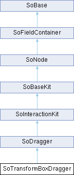 - SoInteractionKit, SoDragger, SoCenterballDragger, SoDirectionalLightDragger, SoDragPointDragger, SoHandleBoxDragger, SoJackDragger, SoPointLightDragger, SoRotateCylindricalDragger, SoRotateDiscDragger, SoRotateSphericalDragger, SoScale1Dragger, SoScale2Dragger, SoScale2UniformDragger, SoScaleUniformDragger, SoSpotLightDragger, SoTabBoxDragger, SoTabPlaneDragger, SoTrackballDragger, SoTransformerDragger, SoTranslate1Dragger, SoTranslate2Dragger