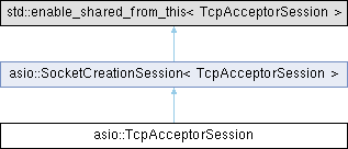 The session implements the asio::SocketCreationSession class template and signals asio::Socket interfaces for incoming connections. Synopsis: