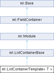 Class template for container modules for a specific list class. Contains a list object storing the internal list and implements the method to access this object.
