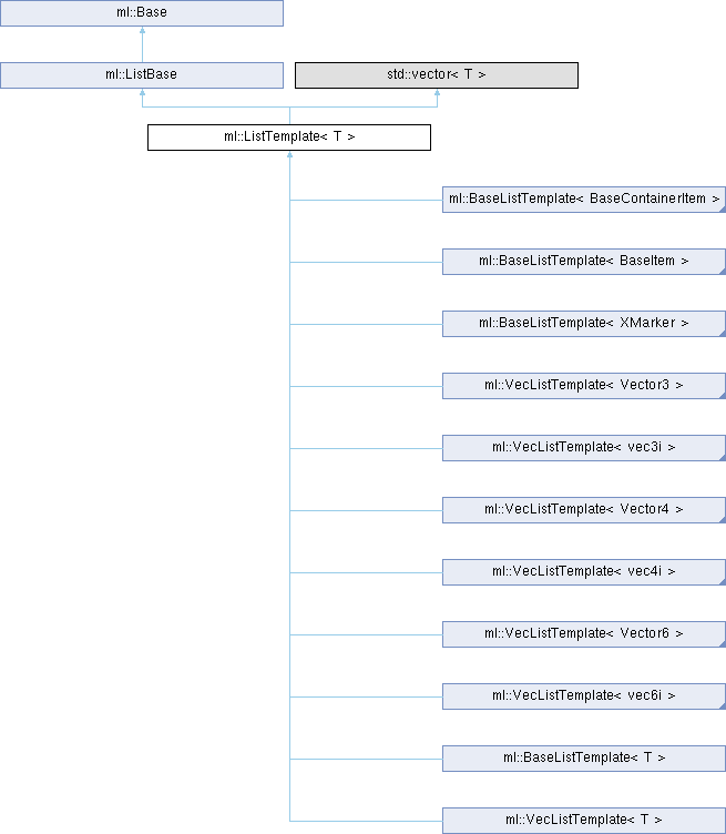 Basic list class template combining properties of ListBase and a vector of the template argument type. More...
