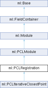 Abstract ML Module class wrapping the pcl::Registration class from the PCL; PCL registration algorithms can/should derive from it to reuse interface descriptions and fields already integrated. More...