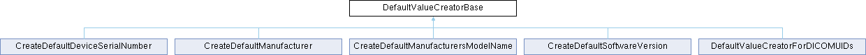 Implemented in DefaultValueCreatorForDICOMUIDs, CreateDefaultSoftwareVersion, CreateDefaultManufacturer, CreateDefaultManufacturersModelName, and CreateDefaultDeviceSerialNumber.