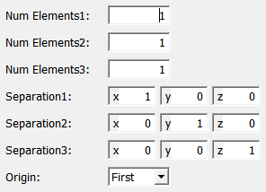traverses its children in order several times, creating a regular 3D array of copies. The number of copies in each of the three directions is specified by fields, as are the vectors used to separate the copies in each dimension.
