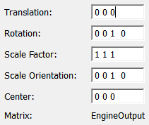 has inputs that specify values for translation, rotation, scale, and center of transformation.