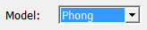 The lighting model is specified in the model field. When the default model (Phong lighting) is applied, light sources are required in a scene for objects to be clearly visible.